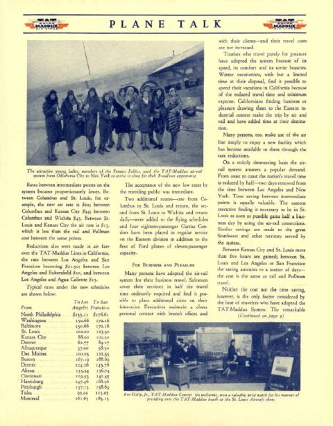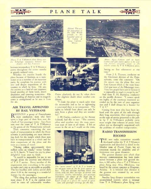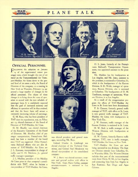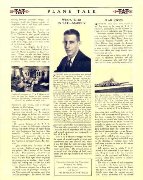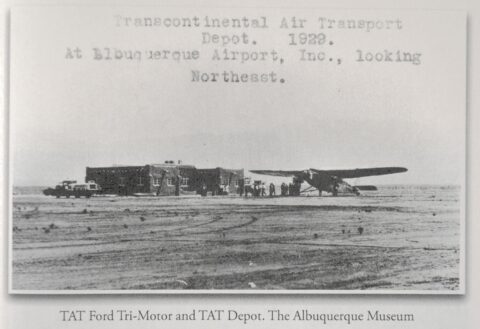 By July, 1928, a New York businessman by the name of James G. Oxnard appeared on the scene and bought out the interest that Langford Franklin had in the new airfield. Oxnard then quickly invested in building the airport into a first-class field by constructing more facilities and lighting. Frank Speakman would be the airport manager and he and his wife would live in the new administration building. In early 1929, the airfield was expanded to 480 acres and the runways were extended. More facilities were constructed including a clubhouse and a second, much larger hanger. Within one year of opening, the first of two commercial air carriers began service to the airport, Western Air Express (WAE) on May 15, 1929 followed by Transcontinental Air Transport (TAT) on July 9, 1929. Both carriers operated twelve passenger tri-motor aircraft on a competing east-west route between Los Angeles and Kansas City with a stop in Albuquerque. WAE operated other routes as well but this was the only route for TAT. TAT also built its own terminal building at the airport. WAE was soon concerned of safety at this airport due to its close proximity to the Sandia and Manzano Mountains as well as the strong winds that often develop through Tijeras canyon directly to the east. The carrier then made the decision to build their own airfield on the west side of Albuquerque which was up and running within a few months. WAE moved their operation to the new airport by the fall of 1929 while TAT remained at the Albuquerque Airport. The fall of 1929 also saw the beginning of the Great Depression at a time when the United States government was awarding a new mail contract for the east-west route through Albuquerque. Both airlines would need the lucrative mail contract to survive so TAT and the Los Angeles to Kansas City route of WAE were merged by the summer of 1930. The merged entity became known as Transcontinental and Western Air (TWA) and all airline operations were then moved to the West Mesa Airport.