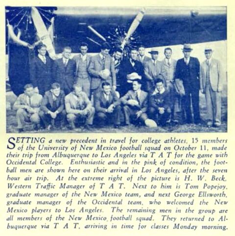 The first airport to serve Albuquerque was constructed in 1928 as a private venture by two men, Frank G. Speakman and William Langford Franklin, both employees of the Santa Fe Railway. Speakman and Franklin were deeply inspired with aviation by Charles Lindbergh’s crossing of the Atlantic Ocean in 1927 and could see that Albuquerque would need an airport within the very near future. The two partners took it upon themselves to lease 140 acres of land about six miles southeast of downtown Albuquerque at the intersection of Wyoming Blvd. and K Street on what is now Kirtland Air Force Base. The men purchased an old grader that turned out to be insufficient for the job so they approached Albuquerque Mayor Clyde Tingley for help. Tingley was very supportive but had no funding available for such a project. Instead, the mayor allowed the men to borrow city equipment at night and on weekends. Speakman then quit his job with the railroad and devoted himself full time to constructing the new airport. The facility opened on May 15, 1928 with the landing of the first aircraft and would become known as the Albuquerque Airport although it was privately owned.
