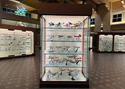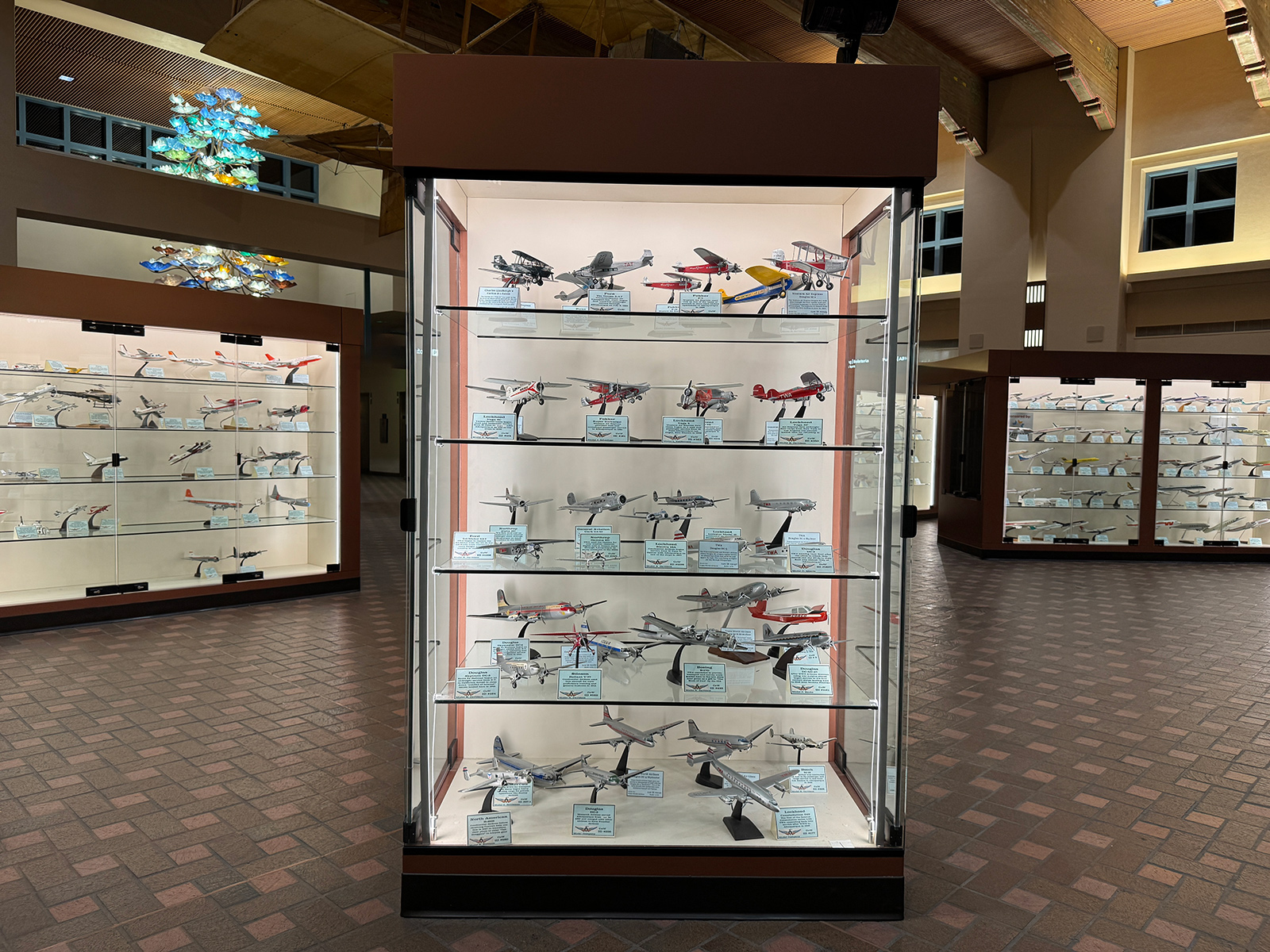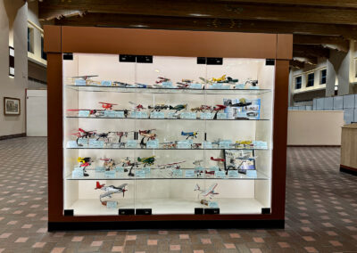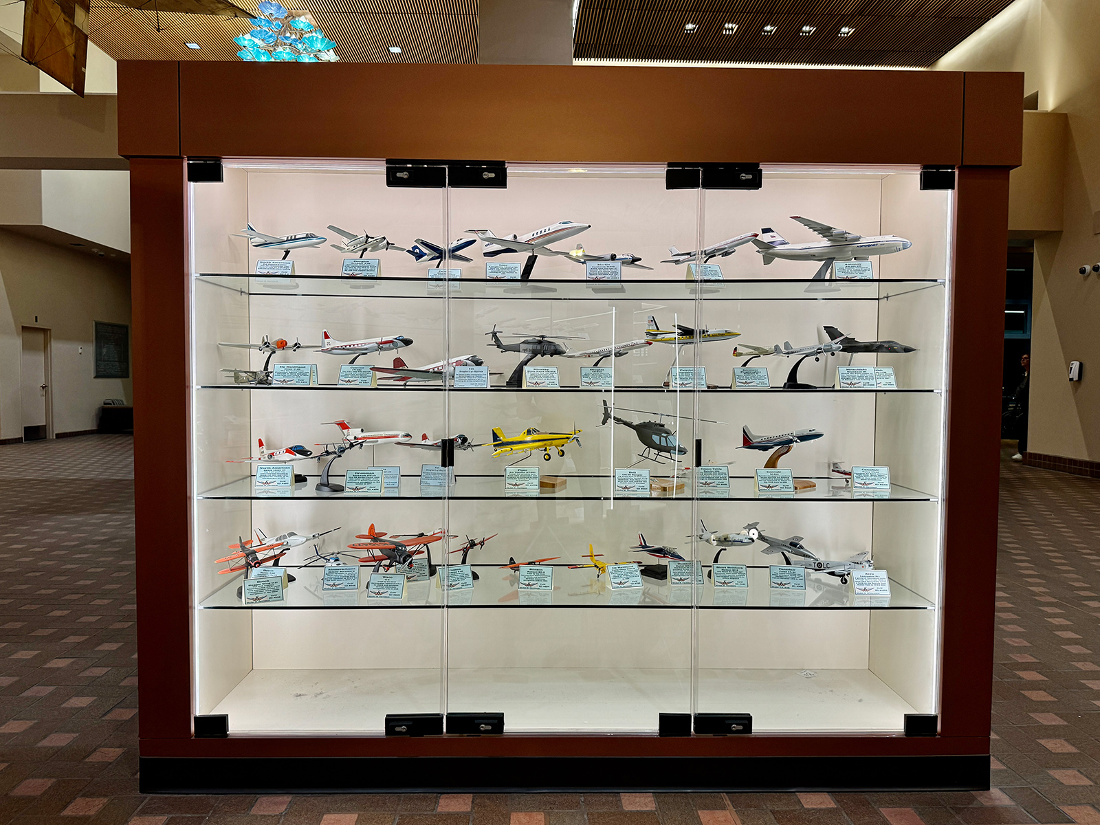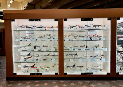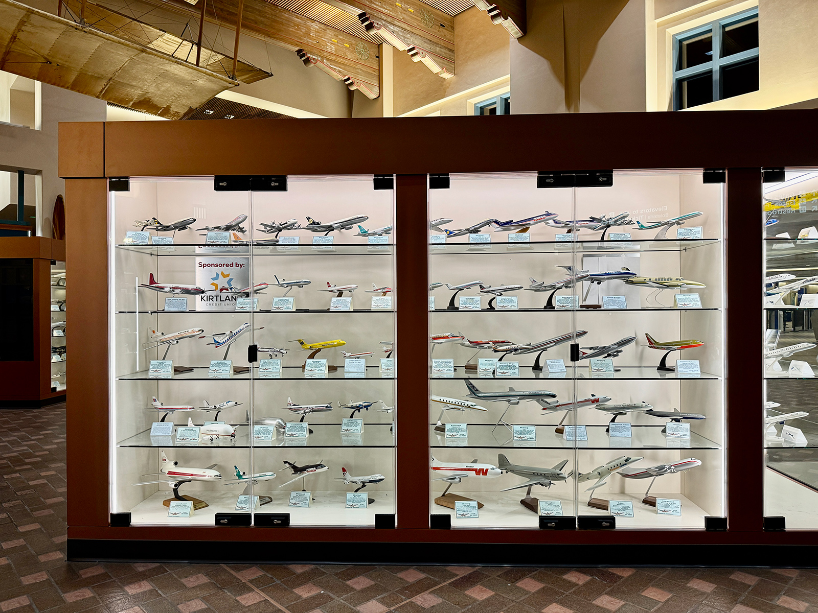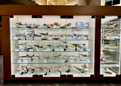The collection has gone from one display case with 25 airplane models to a collection that represents almost all commercial, military, government, and private aircraft that have directly contributed to New Mexico’s aviation history. Each aircraft model is crafted to look like the actual plane to land in Albuquerque and in most cases is documented with a photograph of the plane sitting here on the ground. The collection includes all commercial airlines from the first TAT and Western Air Express to every airline currently servicing the Sunport. Most of the commercial aircraft models were donated by the actual airline when they serviced Albuquerque.