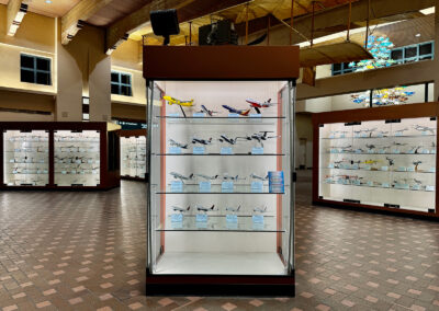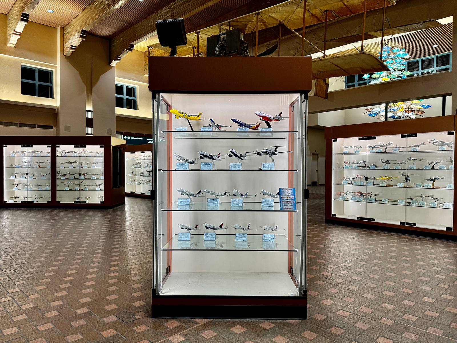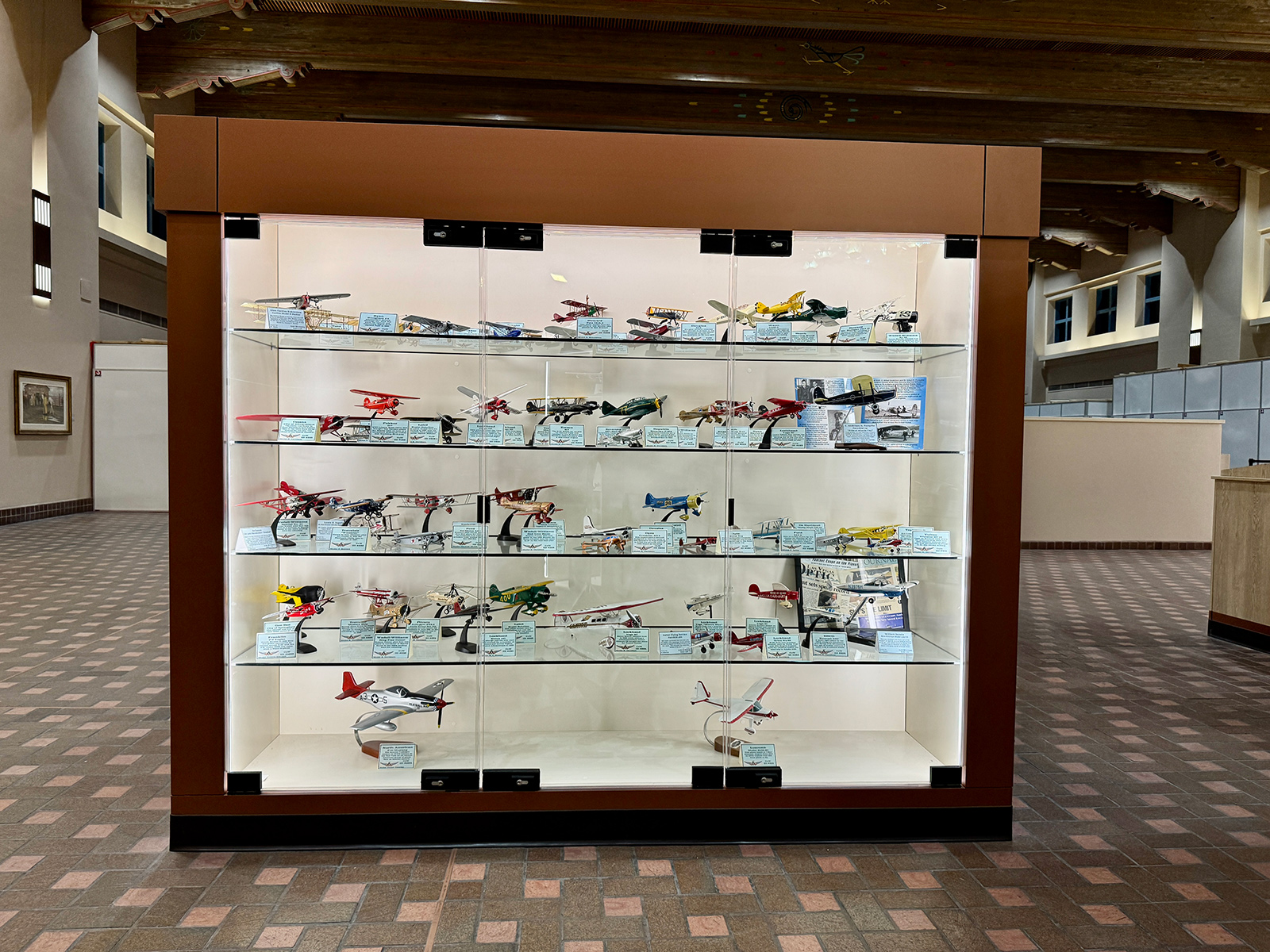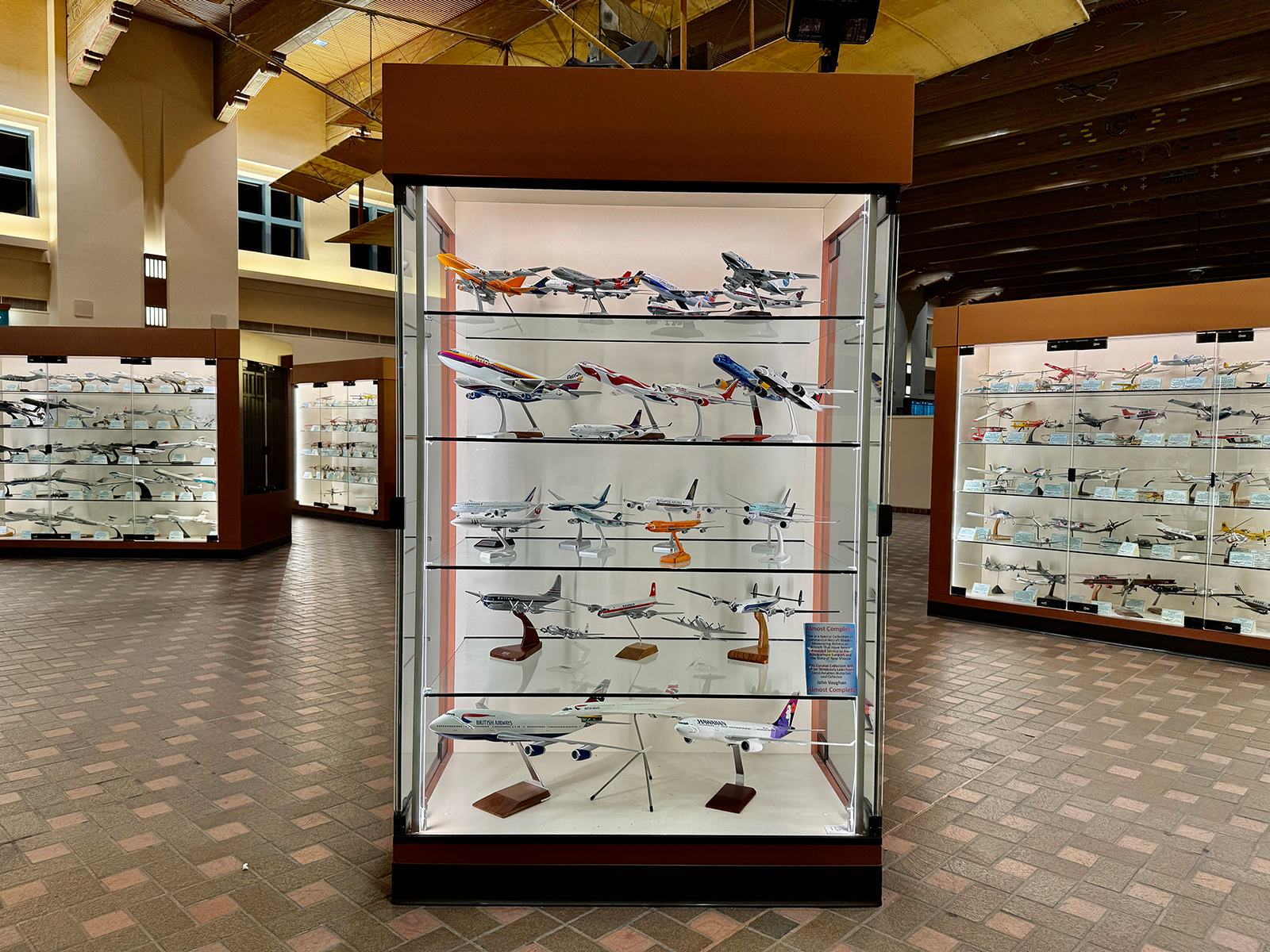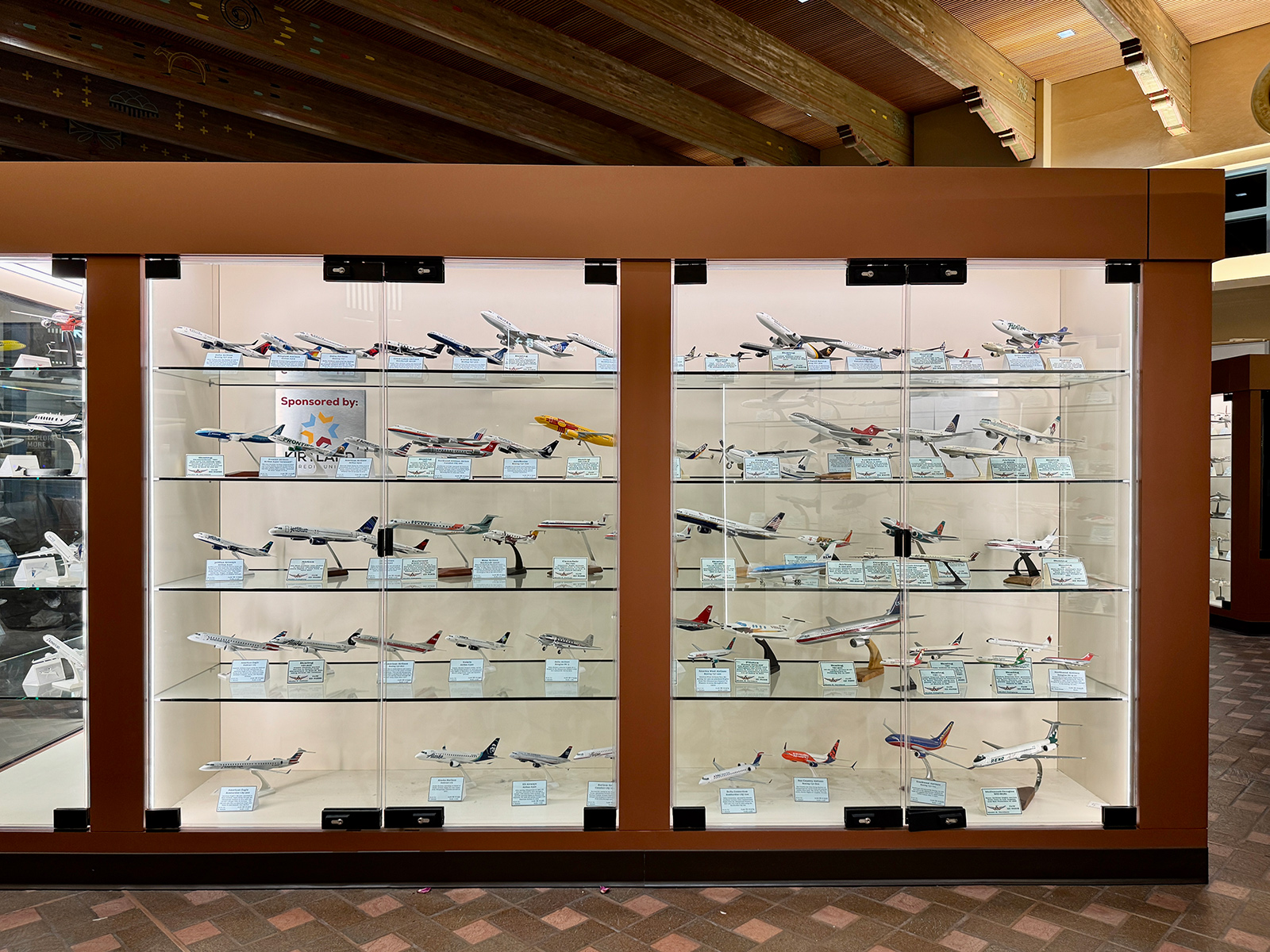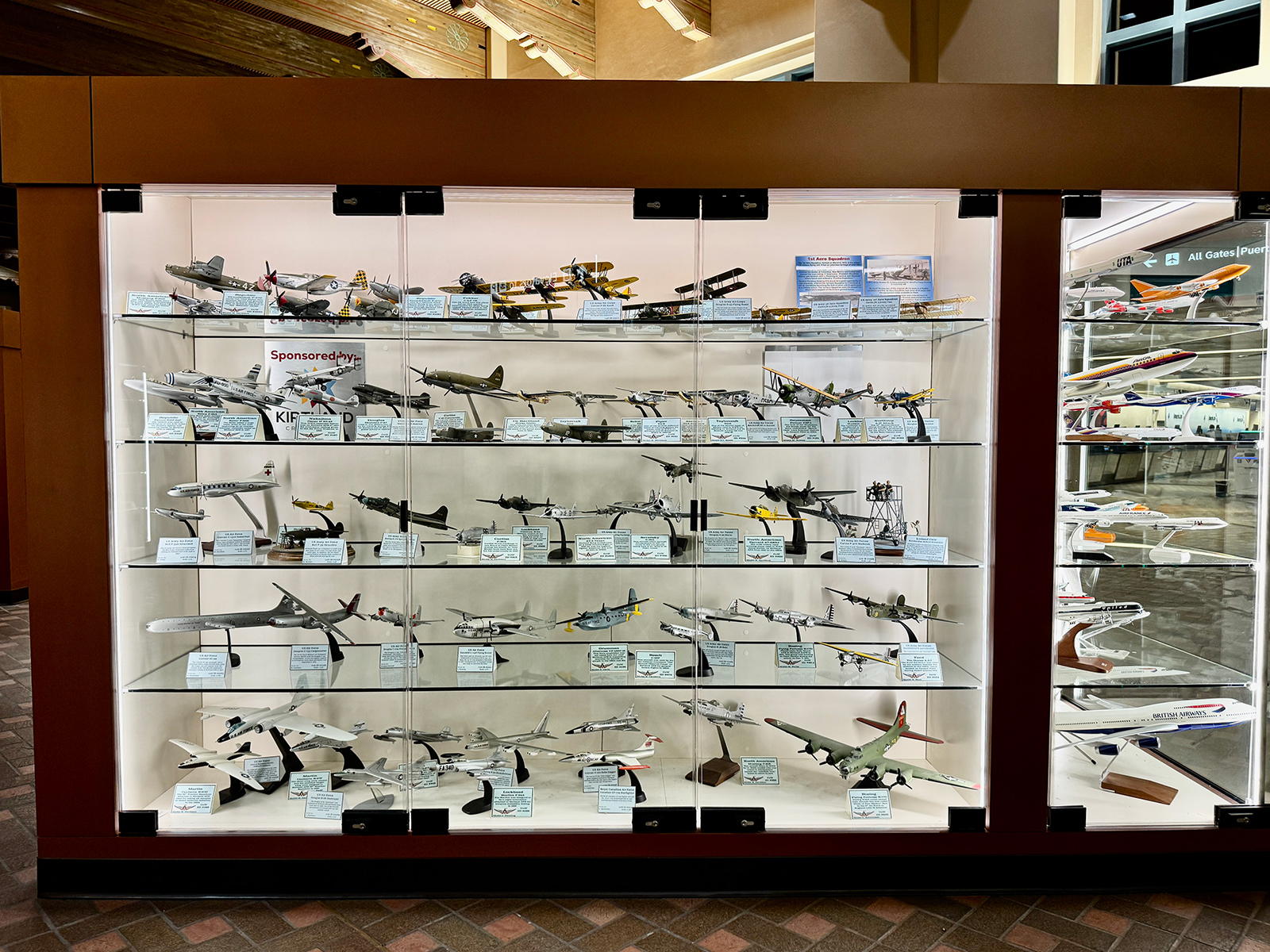 Beginning with the first display case in 1965, the Cavalcade of Wings airplane model display has grown into a popular aviation museum with over 900 scale aircraft models and a multitude of aviation artifacts. Located in the Albuquerque Sunport’s Great Hall, the display of this historic collection is one of, if not the largest to be found at an airport in the United States.