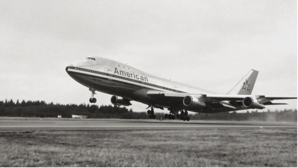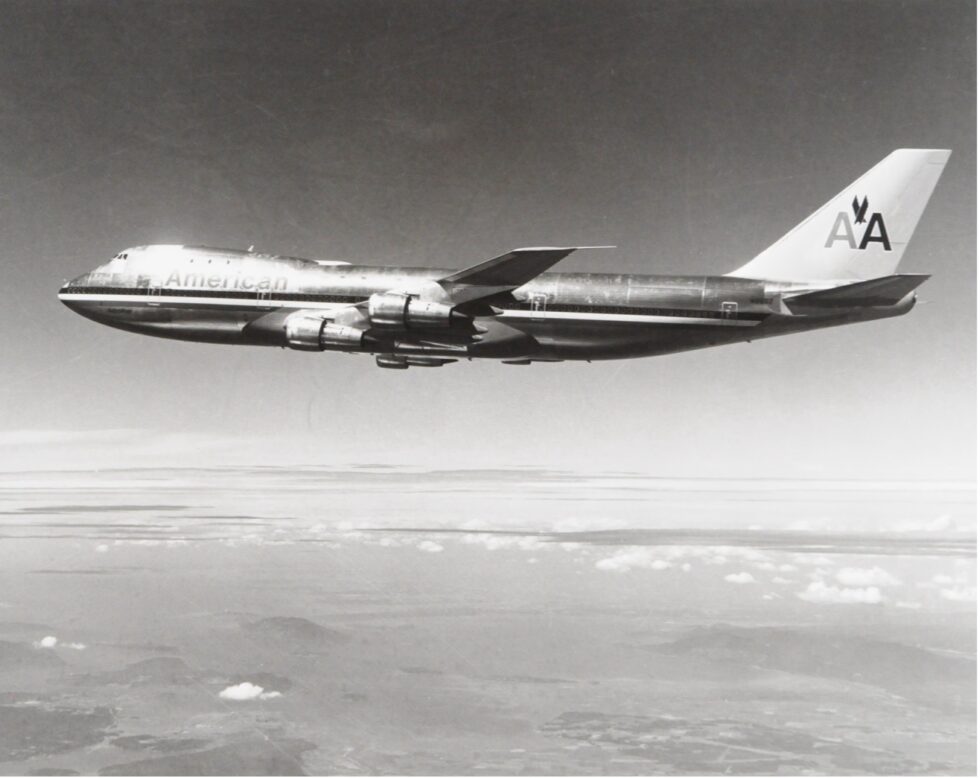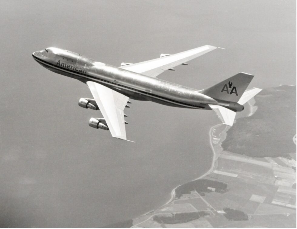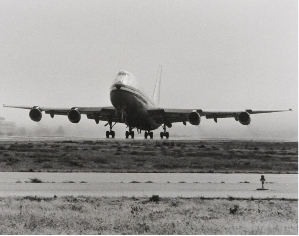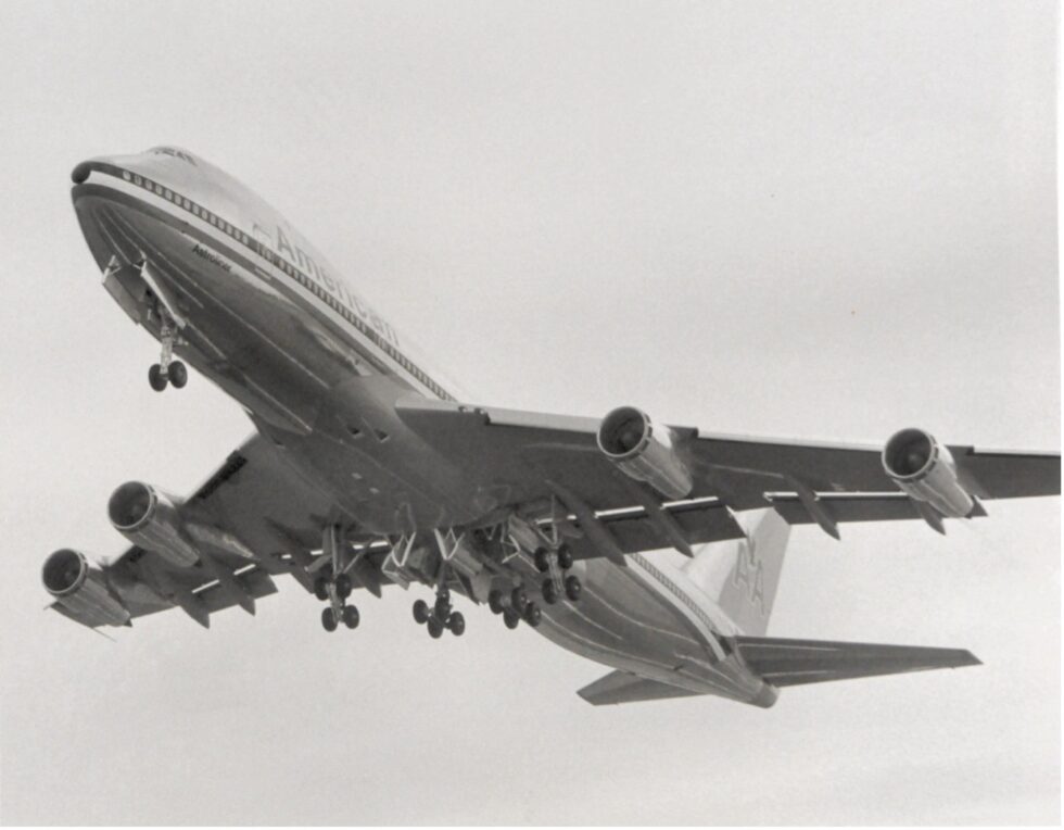 The Boeing 747 is a large, long-range wide-body airliner designed and manufactured by Boeing Commercial Airplanes in the United States between 1968 and 2023. In 1965, Joe Sutter left the Boeing 737 development program to design the 747. In April 1966, Pan Am became the first customer by ordering 25 Boeing 747-100 aircraft. In late 1966, Pratt & Whitney agreed to develop the JT9D engine, a high-bypass turbofan for the 747. On September 30, 1968, the first 747 was rolled out of the custom-built Everett Plant, the world’s largest building by volume. The first flight took place on February 9, 1969, and the 747 was certified in December of that same year. It entered service with Pan Am on January 22, 1970. The 747 was the first airplane to be called a “Jumbo Jet” as the first wide-body airliner.