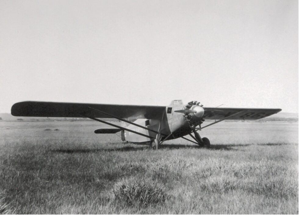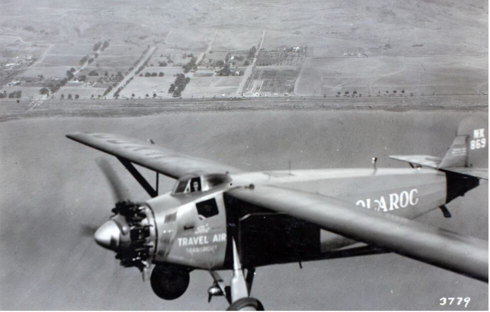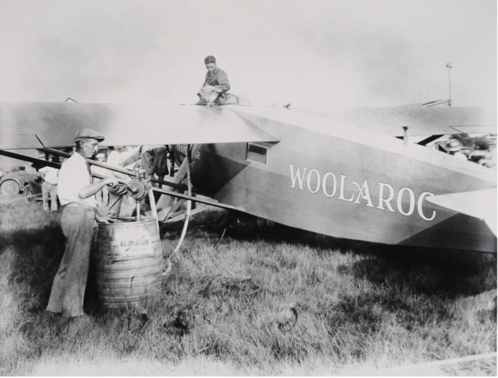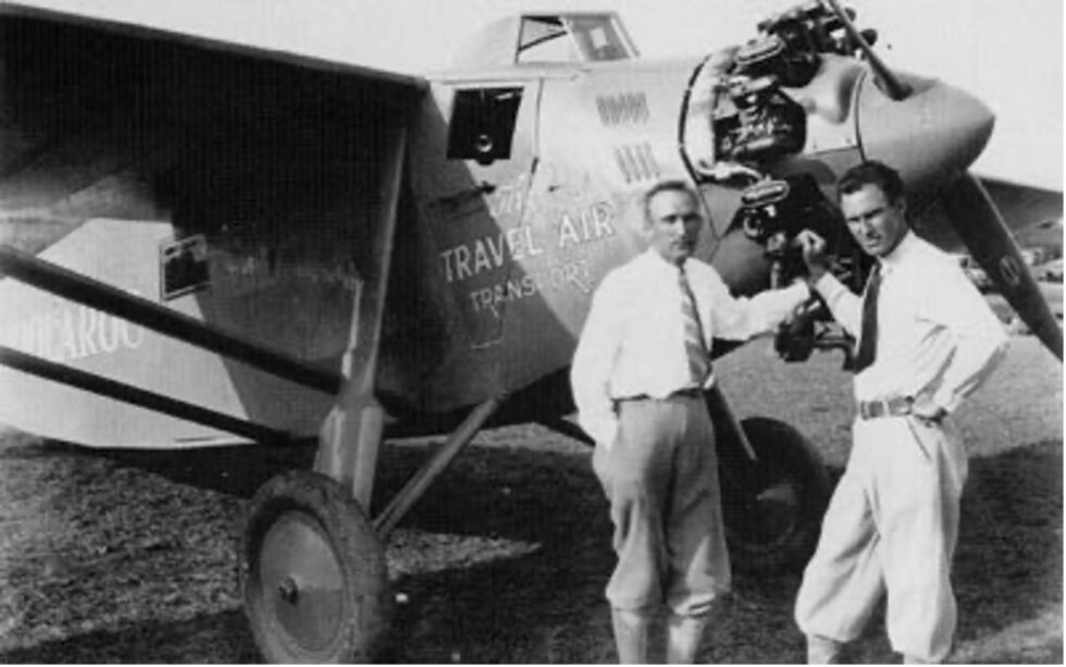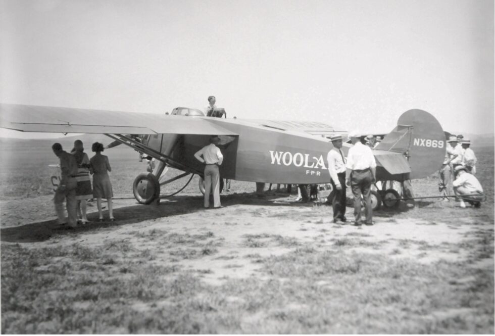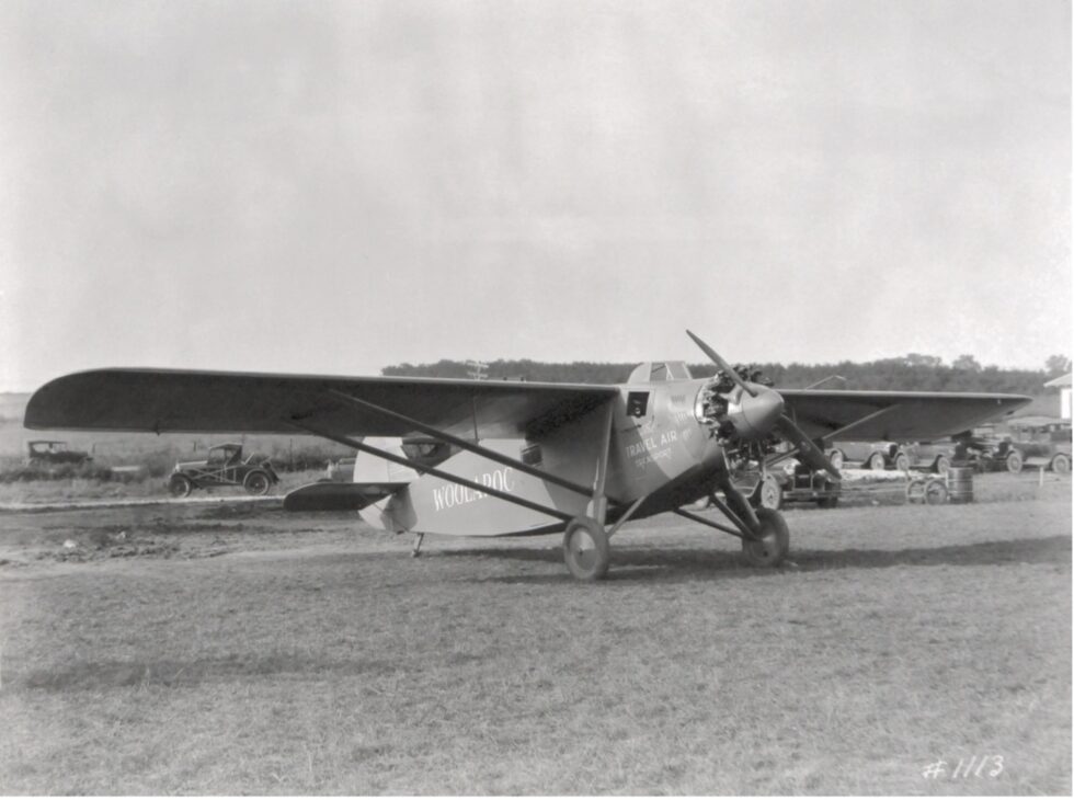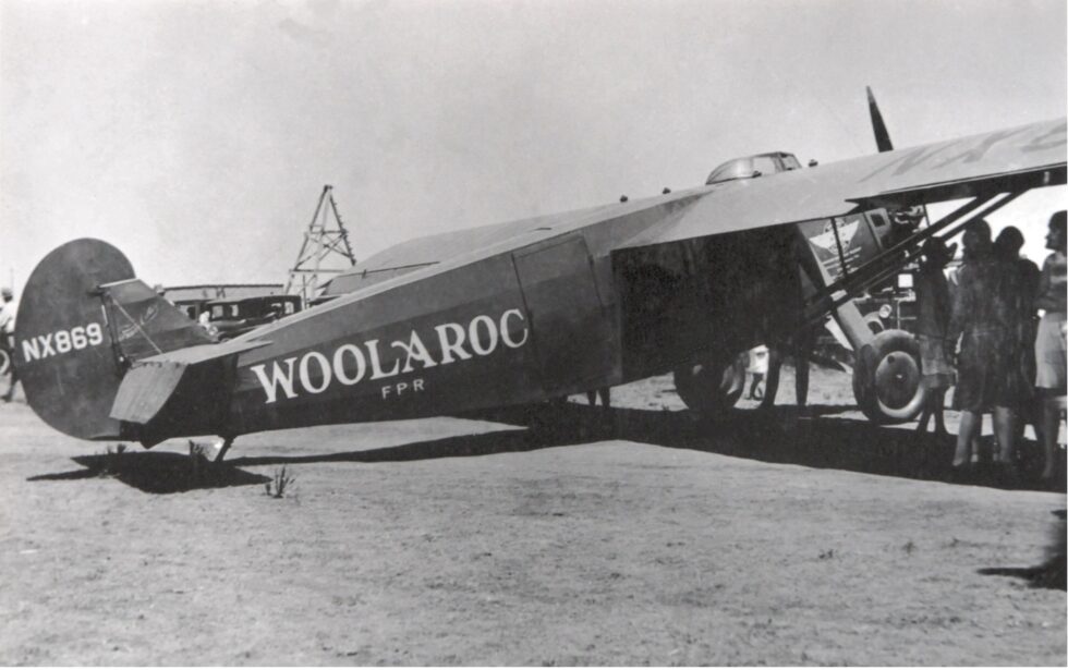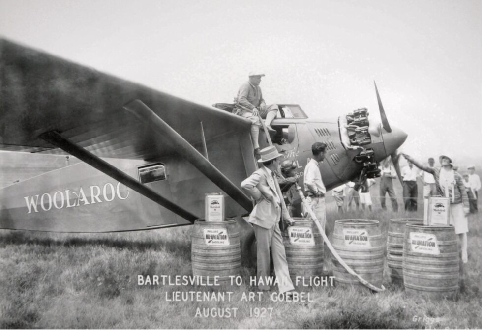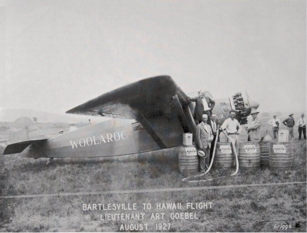 Arthur Goebel took part in the competition with his navigator William V. Davis flying a modified Travel Air 5000, NX869, called the “Woolaroc” owned by Phillips Petroleum Company. After a flight time of 26 hours and 15 minutes, they were the first to complete the flight distance of 2,405 miles and won the prize of 25,000 US dollars.