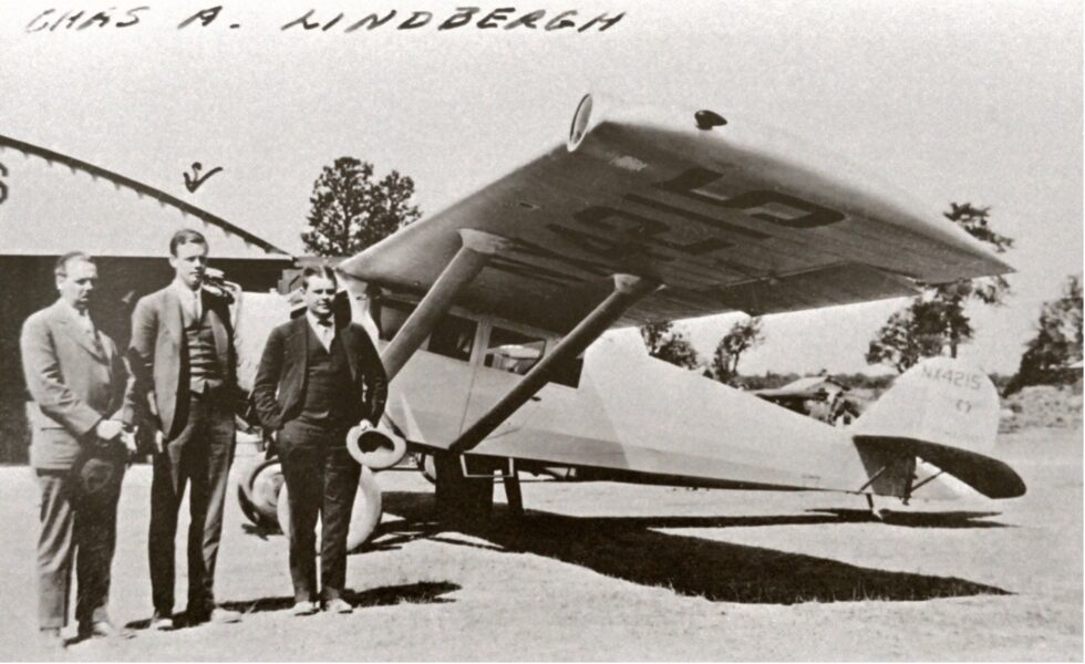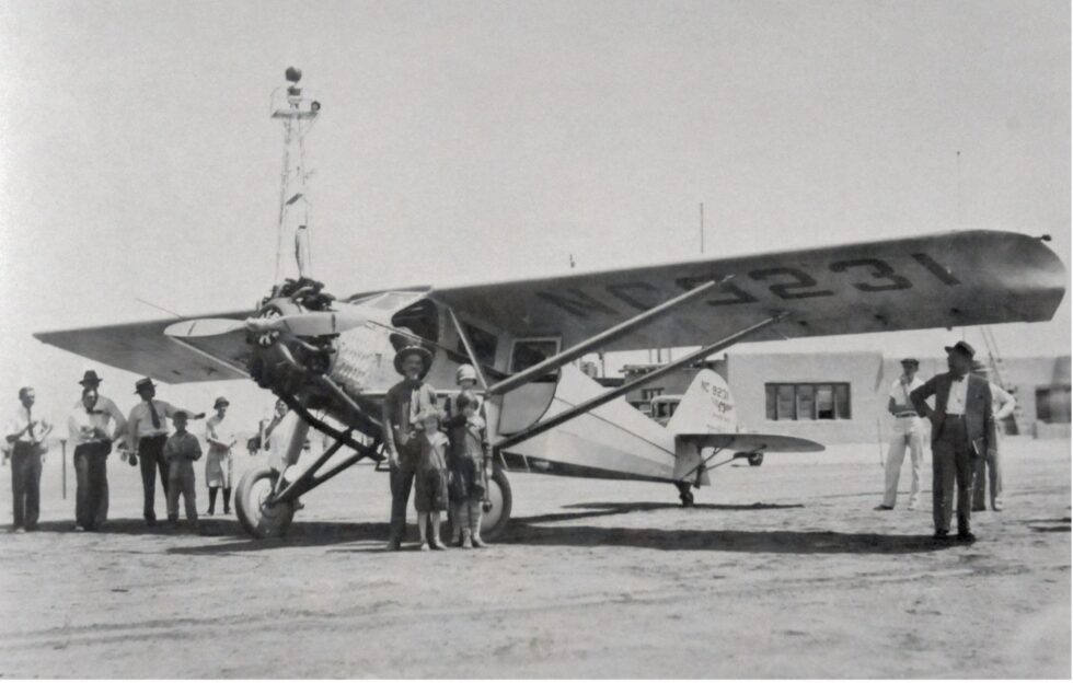 Charles Lindbergh made an initial rough survey of the proposed cross country routes for Transcontinental Air Transport (TAT) using the Ryan B-5 Brougham aircraft, NX4215, in 1928. This route went through Albuquerque, New Mexico. This eventual TWA airline was called the “Lindbergh Line” throughout the 1930’s.