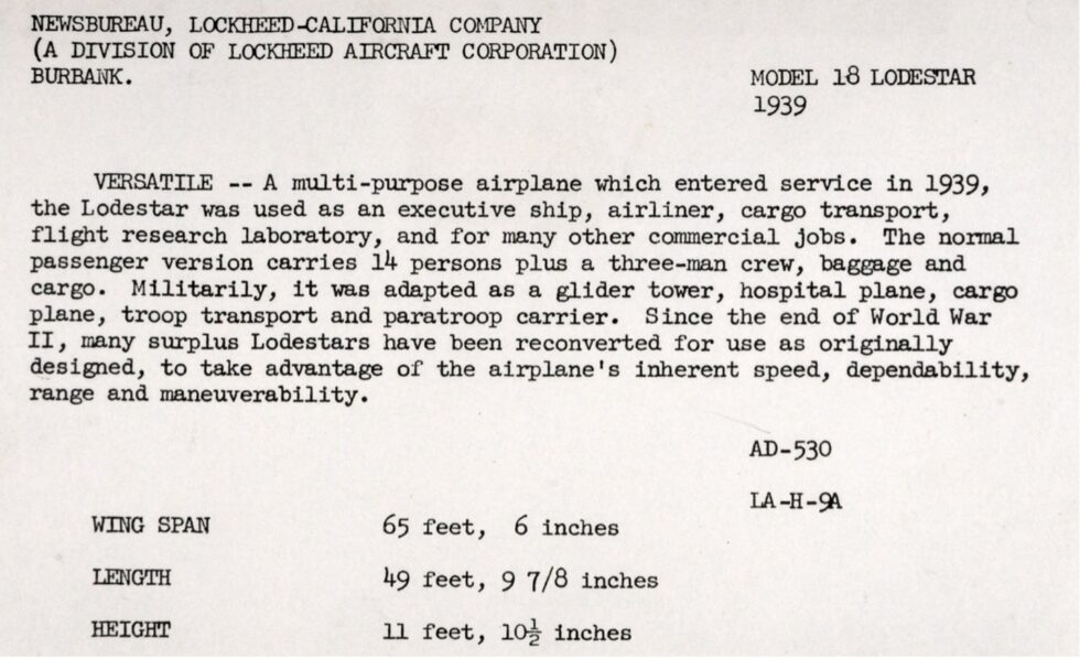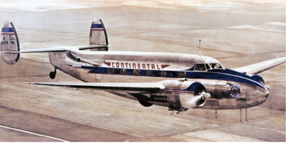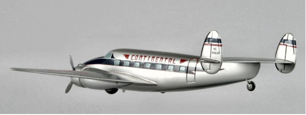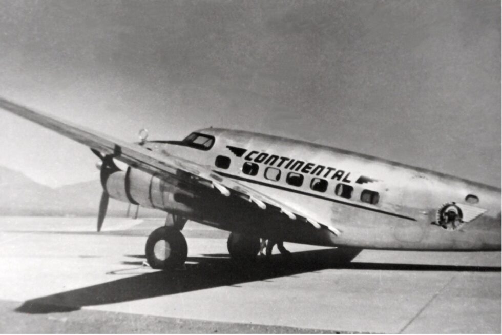 Continental Air Lines began service with the Lockheed Model 18 Lodestar in 1939. This was considered excellent and speedy service for “feeder” airlines. Continental flew the aircraft on routes from Denver to Albuquerque and El Paso, Denver to Wichita and Tulsa and Denver to Kansas City, each making stops at several smaller cities enroute. Some of the aircraft that landed here were NC17385, 19993 and NC-25635.