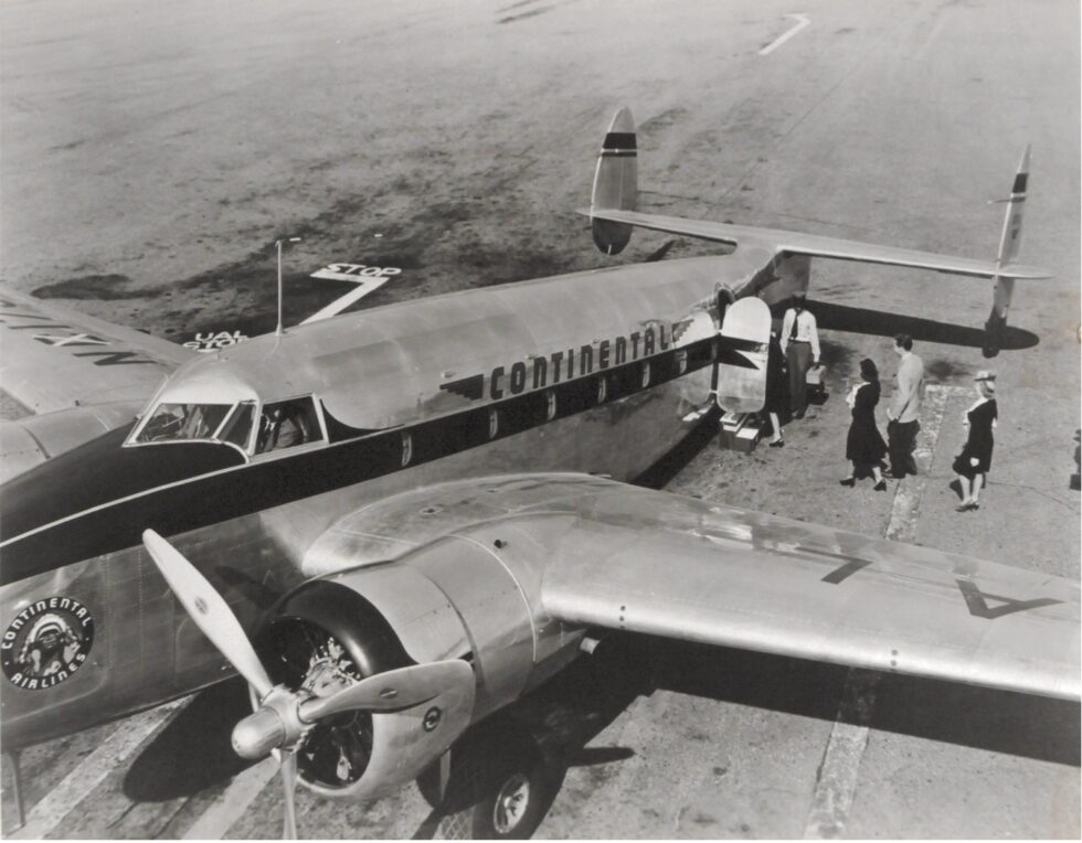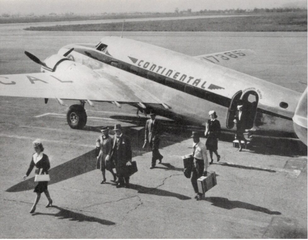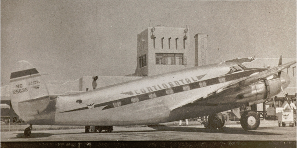 A Continental Lockheed Lodestar at the old Albuquerque Municipal Airport terminal.