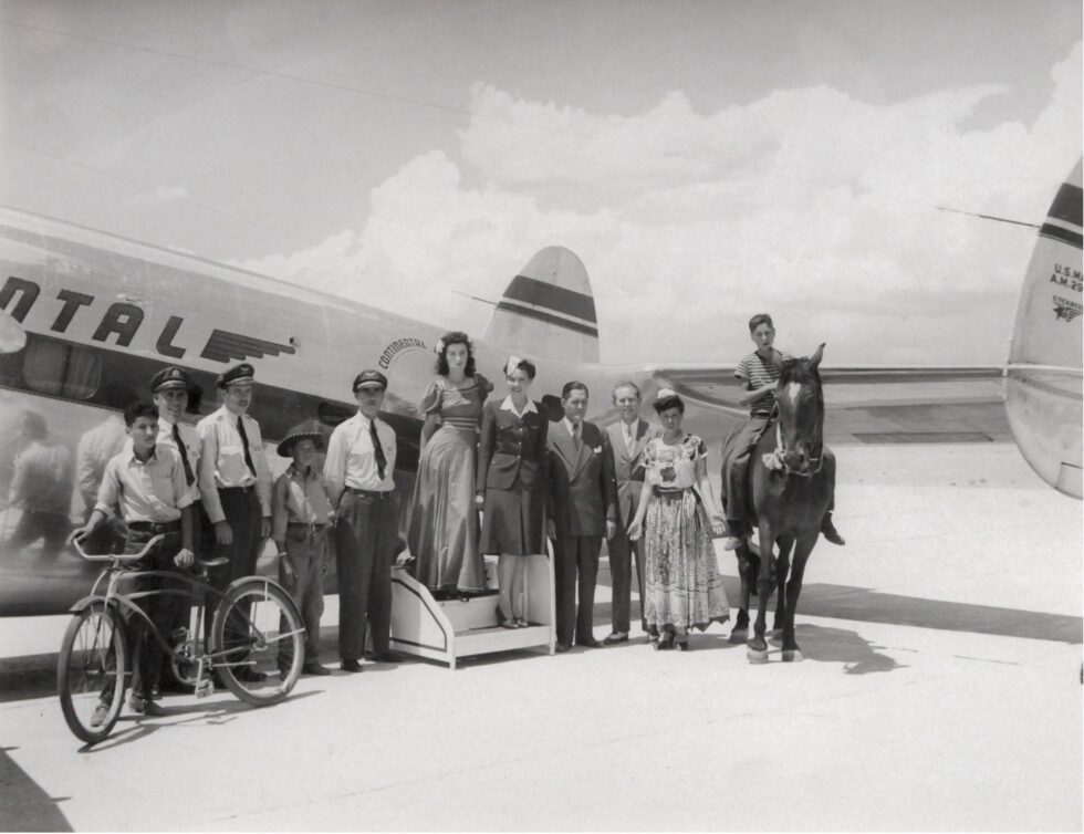 Continental Airlines, which was last based in Houston, Texas, began operating as Varney Speed Lines on July 15, 1934 with a single route from El Paso, TX to Pueblo, CO stopping at Albuquerque, Santa Fe, and Las Vegas, NM. Varney Speed Lines, Southwest Division, was created by Walter T. Varney who also created Varney Air Lines based in Pasco, WA which evolved into United Airlines earlier in 1934. The carrier first operated Lockheed 5C Vega aircraft and Wyoming Air Service operated Stinson SM-8A’s followed by Boeing 247D’s. The carriers’ name was changed to Varney Air Transport in late 1934 and Trinidad, Colorado was added to the El Paso-Pueblo route. In 1937 Varney began obtaining Lockheed Electra aircraft and purchased the Pueblo-Colorado Springs-Denver route segments from Wyoming Air Service which extended the north-south route from El Paso all the way to Denver. Robert F. Six joined the airline in 1935 and soon became President and CEO, changing the carriers’ name to Continental Air Lines on July 1, 1937. Six would go on to oversee the carrier for the next 44 years until 1981. A ticket office was first opened in the Hotel Franciscan in downtown Albuquerque, and then moved to the Hilton Hotel by 1939.