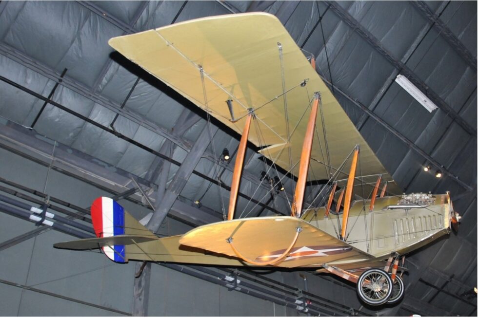 The Curtiss JN-4 is possibly North America’s most famous World War One aircraft. It was widely used during the war to train pilots, and it is estimated 95% of all trainees had trained in a JN-4.  The US version was called “Jenny”, a derivation from its official designation. It was a twin-seat (student in front of instructor), dual-control biplane. Its tractor propeller and maneuverability made it ideal for initial pilot training with a 90 hp Curtis XO-5 V-8 engine giving the plane a top speed of 75 mph and a service ceiling of 6,500 ft.  The Curtiss “Jenny” began production in 1914 with a new design and through a series of improvements becoming the famous JN-4.