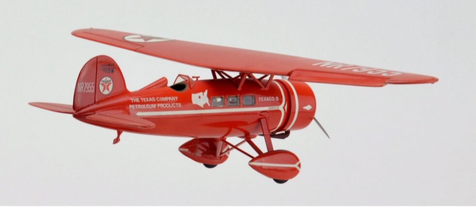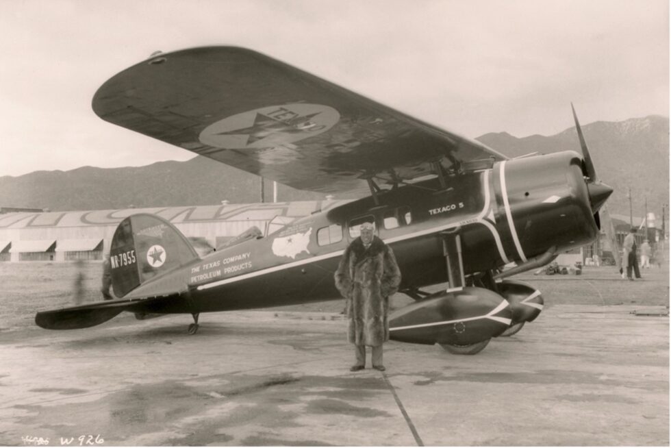 Texaco Oil Company borrowed the brand new Air Express for Frank Hawks’ double transcontinental record flights.