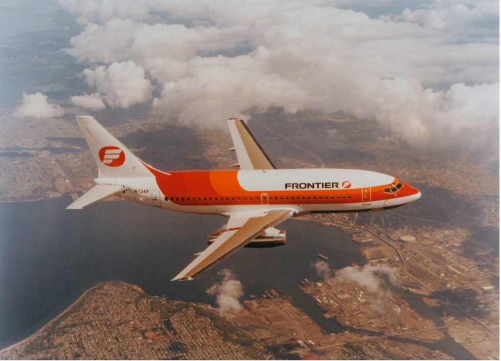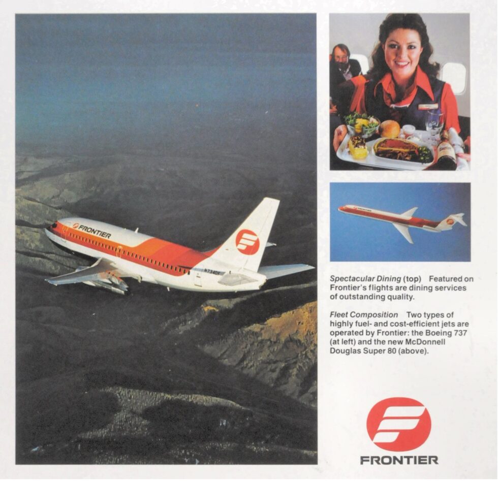 Frontier Airlines was created on June 1, 1950 as a merger of three carriers; Monarch Air Lines of Denver, Arizona Airways of Phoenix, and Challenger Airlines of Salt Lake City. Frontier was based in Denver at the former offices of Monarch Air Lines and initial routes through New Mexico included an Albuquerque to Salt Lake City route with stops at Gallup and Farmington, NM, Durango, Cortez and Grand Junction, CO, and Price and Provo, UT. Frontier began using the Boeing 737’s in 1969 and that aircraft became the predominant jet for the carrier.