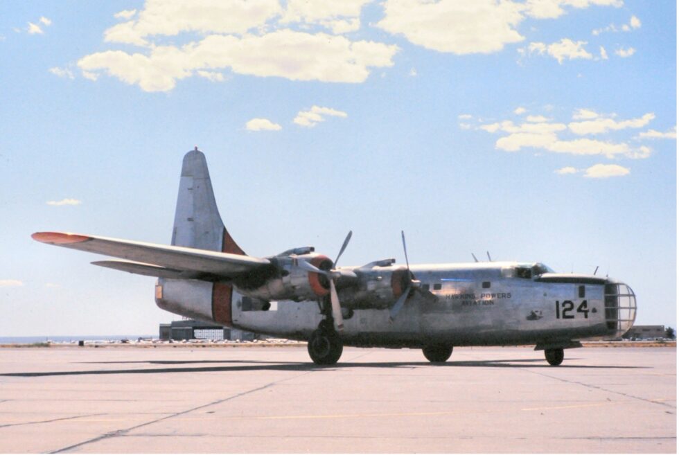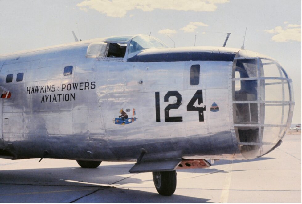 Hawkins and Powers Aviation was the contractor to the US Forest Service for the Priest Canyon Fire in New Mexico. On June 22, 1976, the company used this Consolidated PB4Y-2, N-2872G #124, a former Coast Guard search aircraft converted to a Borate bomber to fight the fire. The aircraft was serviced with fire retardant at the Kirtland Air Force Base Cibola Borate station while fighting the fire.