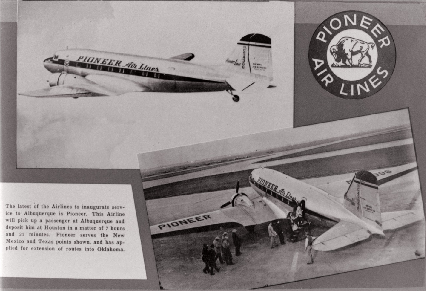 Pioneer Air Lines was established in 1939 under the name Essair Airways and based in Houston, Texas. The name was changed to Pioneer in 1946 and the carrier flew routes within the state of Texas. Service was expanded into New Mexico on May 1, 1948 with a route from Albuquerque to Dallas stopping at Santa Fe, Las Vegas, Tucumcari, and Clovis, New Mexico as well at Lubbock, Abilene, Mineral Wells, and Fort Worth, Texas. Pioneer had a U. S. air mail contract designated as mail route 64 and the carrier used 21-seat Douglas DC-3 aircraft.
