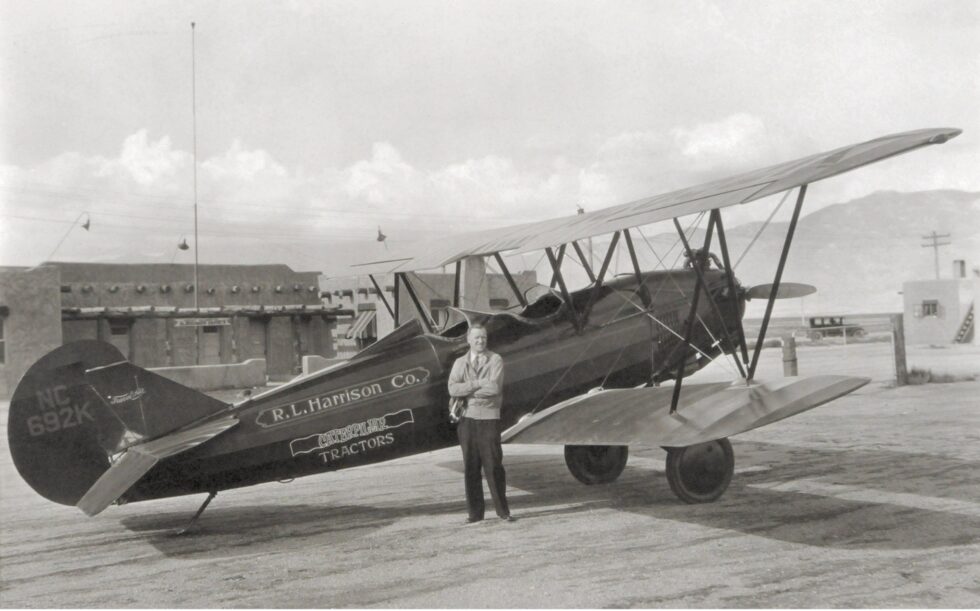 R.L. Harrison, Bill Cutter’s second student in Albuquerque, owned the Caterpillar dealership here. He purchased the Travel Air 4000, NC692K, in 1929 and used this aircraft to deliver parts to any place he could land. This was the first “Company” plane in Albuquerque.