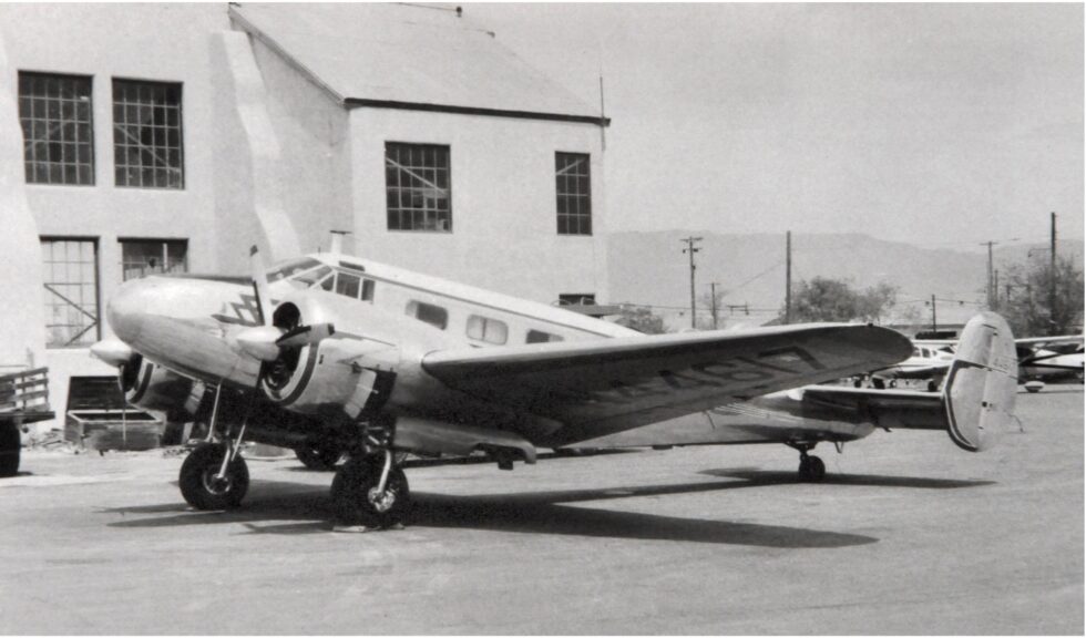 Solar Airlines, a commuter airline that provided service throughout New Mexico and west Texas in 1965 and 1966, operated this Beech 18, registration N3735G. The Beech 18 is a modified surplus military C-45 in which more than 9000 units were built between 1937 and 1970. The photo below is of a typical version of the aircraft at the Albuquerque Sunport.