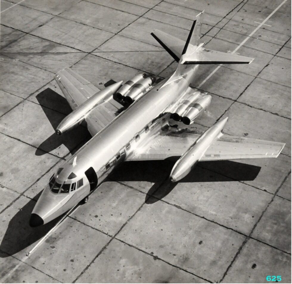 The Lockheed JetStar, designated the L-329 and L-1329, was a business jet produced by the Lockheed Corporation from the early 1960s and into the 1970s. The JetStar was the first dedicated business jet to enter service as well as the only type of airplane built by Lockheed. The JetStar was also one of the largest aircraft in this class for many years, seating up to ten passengers plus two crew members. It is distinguishable from other small jets by the four engines that were mounted on the rear of the fuselage along with the “slipper”-style fuel tanks fixed into the wings.