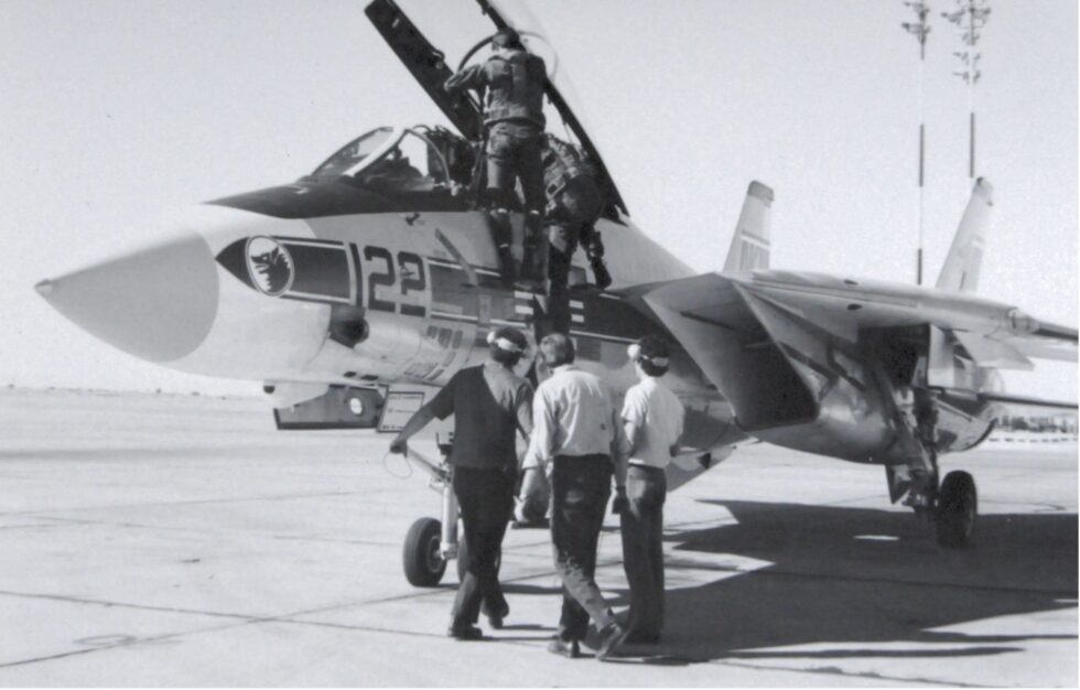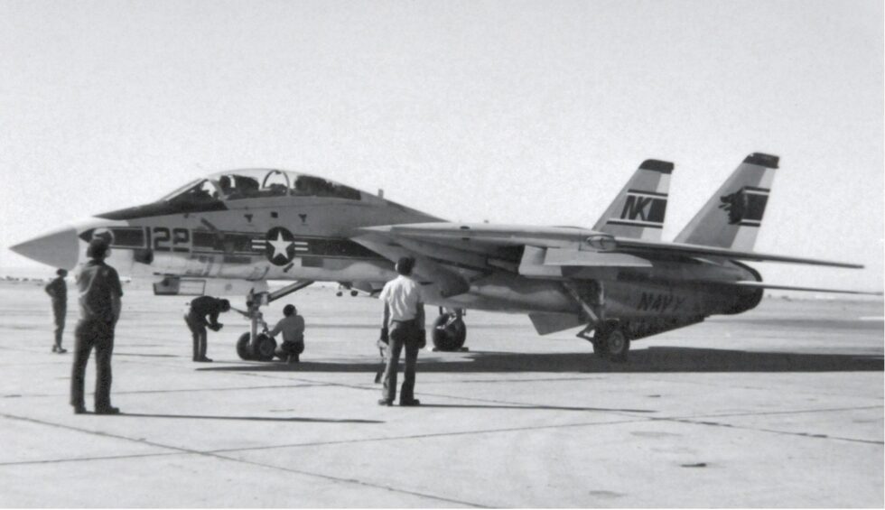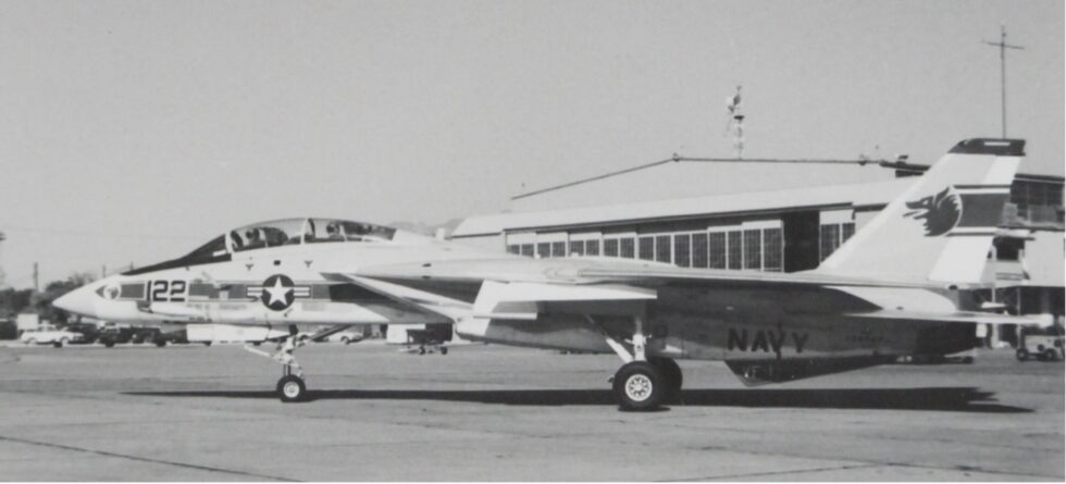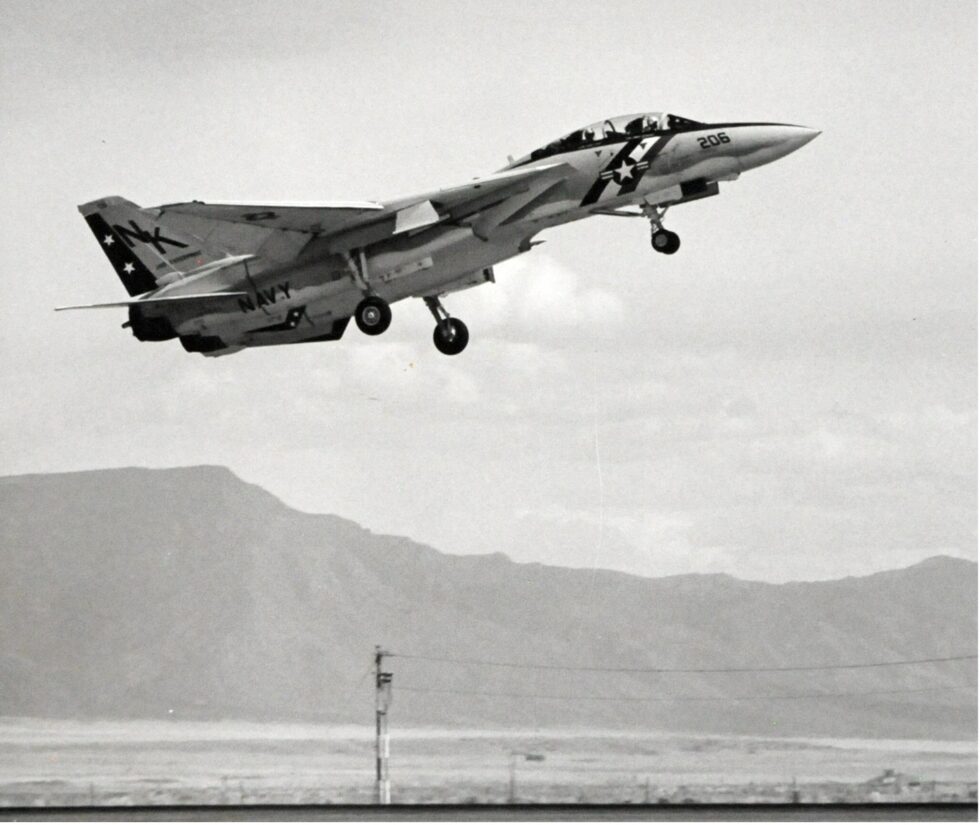 On January 20, 1978 an F-14, Bu No. 160652, landed on Kirtland Air Force Base in Albuquerque, New Mexico. The aircraft was from the Naval Air Station (NAS) in Miramar, California. Upon touch-down he blew both main tires when the brakes locked. The minor damage was repaired by the Naval Weapons Evaluation Facility (NWEF) on Kirtland. Other F-14’s, Bu No. 159003 and 160404 were stationed here in 1981 for electronic test and vulnerability issues at Sandia Laboratories. Many other transient F-14’s have landed at Kirtland AFB throughout the years.