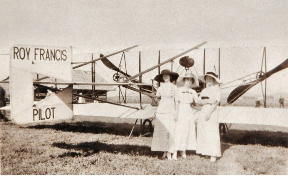 Captain Roy Newell Francis (1886- 1952) born in Santa Clara County, California is considered one of the “early birds” of American aviation. In 1911, he took off from Cow Flat near the Presidio of San Francisco, and made a successful flight in a biplane he designed. On November 18, 1912, Francis and his Patterson Twin pusher biplane made the first passenger flight over the San Francisco Bay carrying local passenger Vivian O’Brian. The plane took off from Alameda and landed near Cliff House in San Francisco. In 1912 Francis partnered with Charles Patterson to form the Patterson-Francis Aviation Company based in San Francisco, California. Francis quit barn storming a few years later and became an Army captain in the First World War