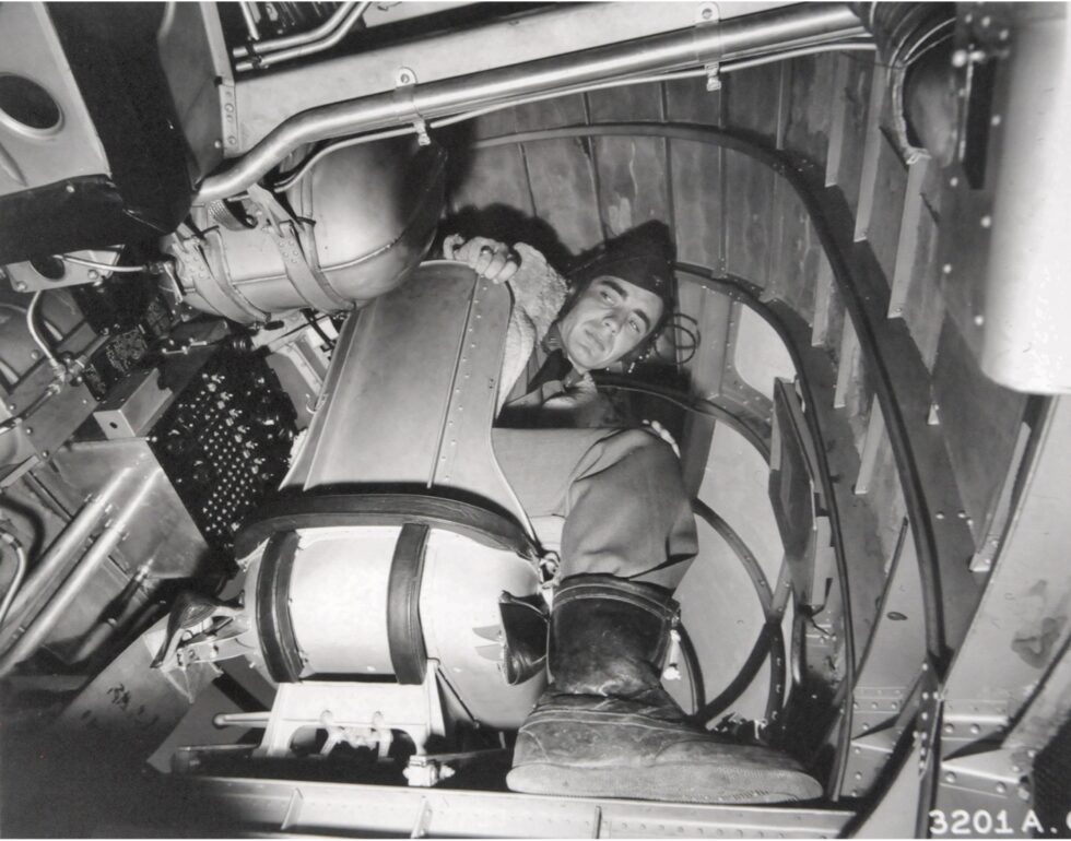 The bombardier’s perch is shown inside of a B-18 Bolo bomber.