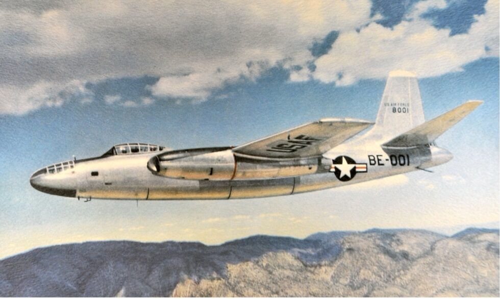 In late 1949, the North American B-45C Tornado, 86-001, was assigned to the 4925th Test Group (A) at Kirtland Air Force Base in Albuquerque, New Mexico so it could receive nuclear weapons evaluation testing.