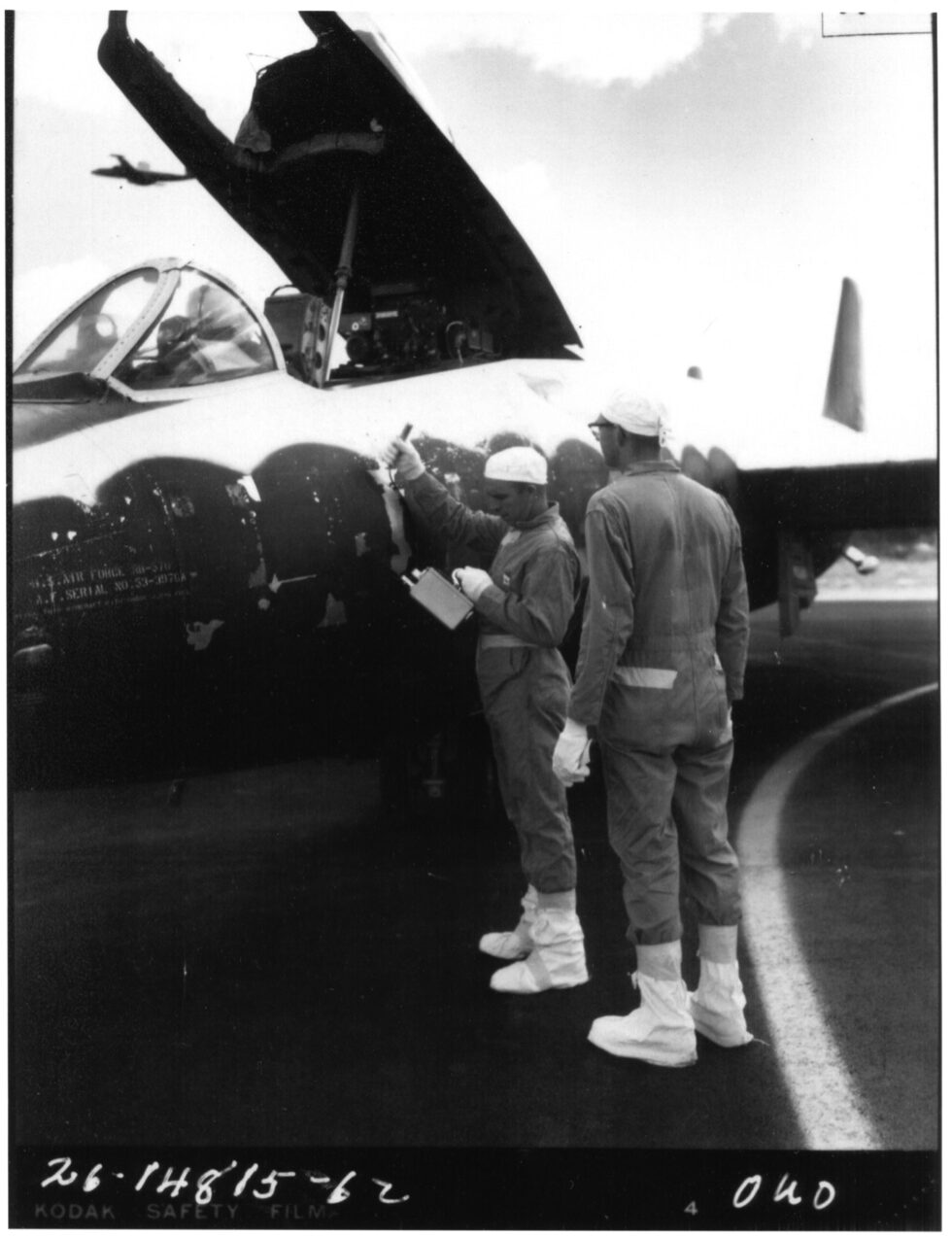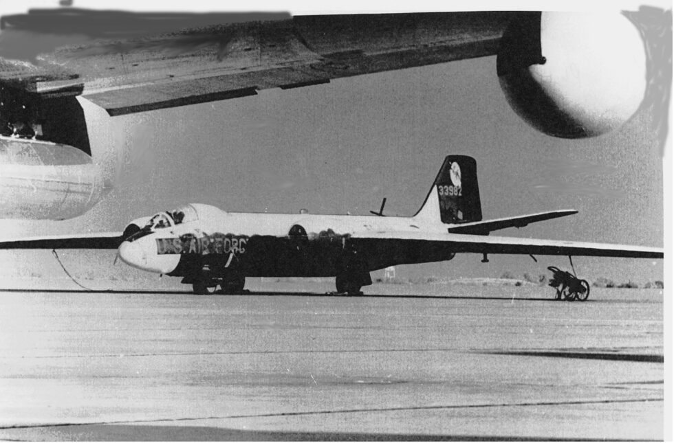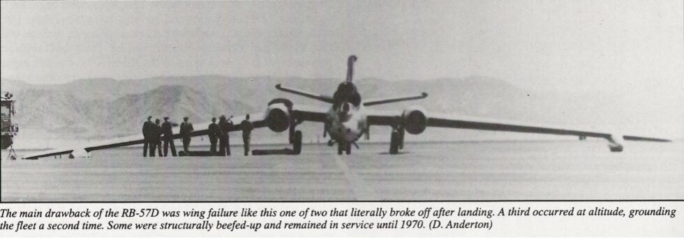 One photo below shows the RB-57D that suffered a wing failure upon landing at Kirtland AFB in the early 1960’s. The pilot of that aircraft was Capt. Harry G. Howell Jr. and the RB-57D was by then assigned to the 1211th Test Squadron (Sampling).