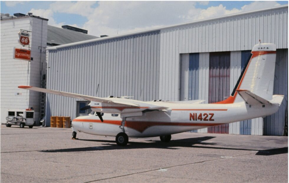 The US Forest Service (USFS), Southwestern Region 3, was assigned this North American Rockwell 500-B Aero Commander aircraft in January, 1968. It was used primarily as a lead-plane to guide borate-bomber aircraft when dropping chemical slurry on New Mexico and Western state forest fires. It was also used for para fire-fighter and cargo parachute drops. At other times it was a general utility aircraft for the USFS. The Aero Commander assigned to the USFS in New Mexico was number N142Z.