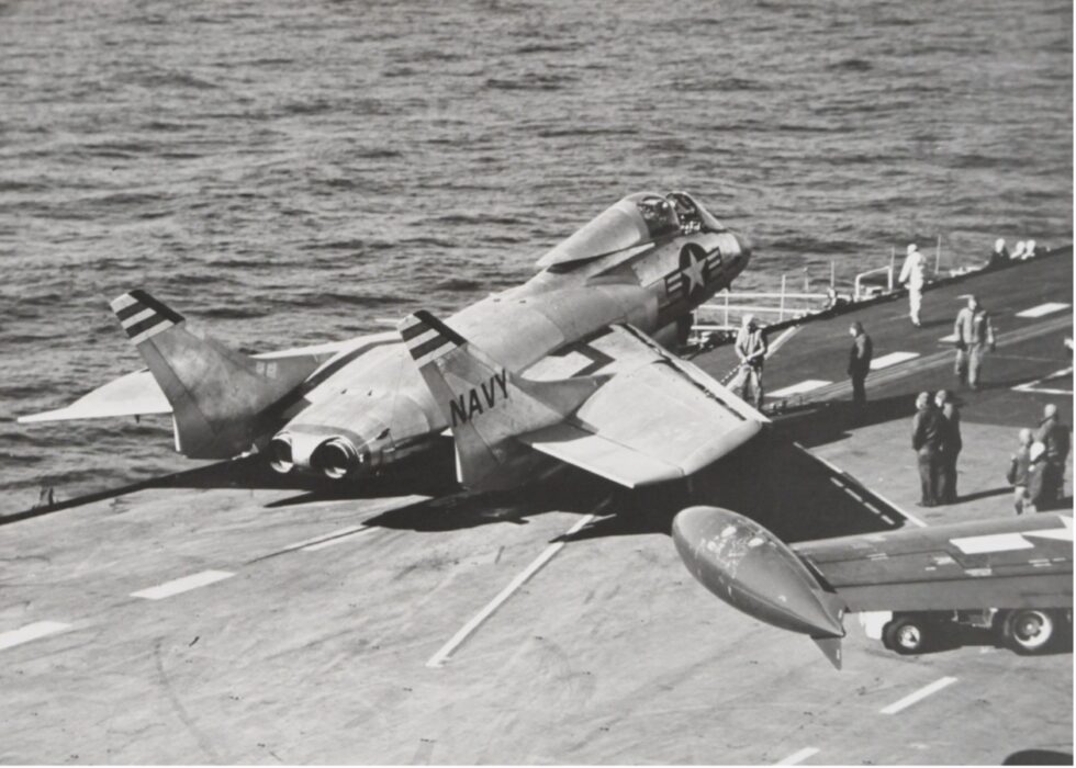 The first production model of the Cutlass, the F7U-1, entered service during July of 1951. It was promptly followed by F7U-2 and F7U-3, both improved models that were equipped with more powerful engines among other refinements. However, the Cutlass continued to frequently suffer from both technical and handling problems throughout the aircraft’s short service career. Accidents involving this aircraft were responsible for the deaths of four test pilots and 21 other U.S. Navy pilots. Over one quarter of all Cutlasses built were destroyed in accidents. This high accident rate led to its being withdrawn from service during the late 1950s.