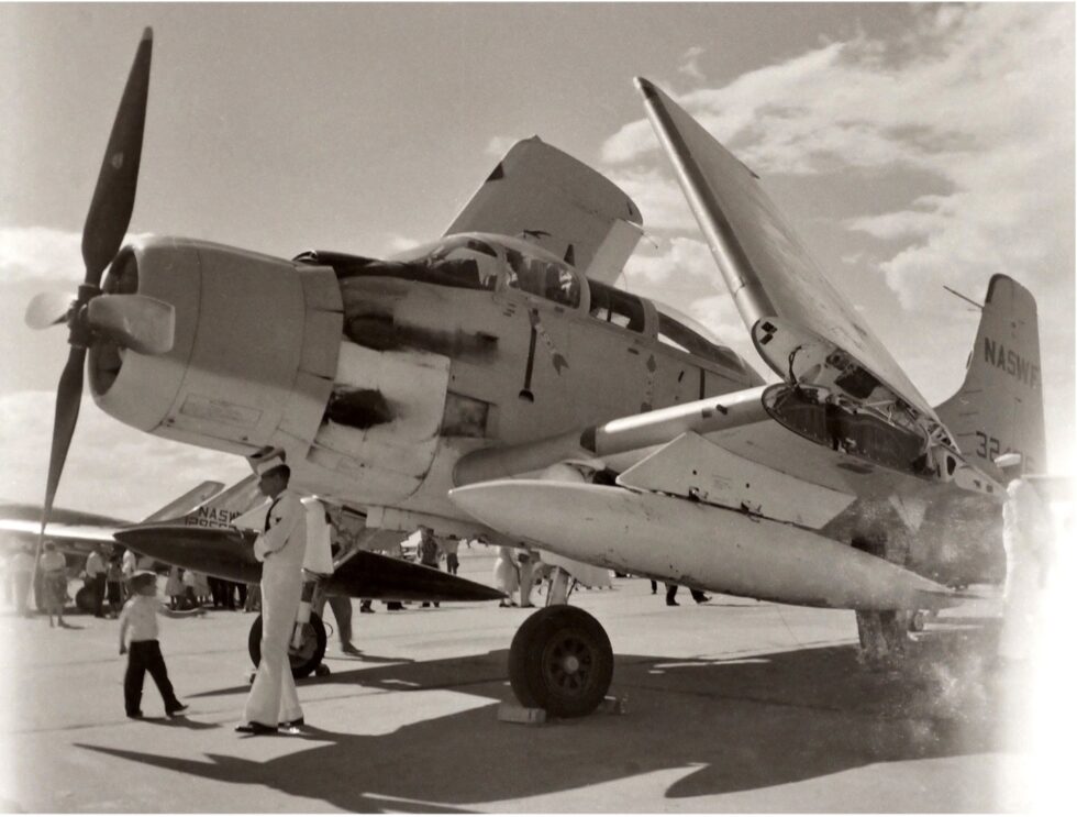 The Naval Weapons Evaluation Facility (NWEF), located at Kirtland Air Force Base, tested the A-1’s ability to deliver nuclear weapons in 1958. Test drops were conducted with aircraft 32503 at the White Sands Missile Range (WSMR). The drops tests were accompanied by other NWEF aircraft that were equipped with cameras to record the results. An aircraft, after dropping a weapon, had to be able to escape beyond the blast and radiation radius before the weapons impact with the ground. A timer was developed to delay the detonation after impact allowing this slow-moving aircraft time to escape. Sandia Corporation in Albuquerque developed this technology for these tests.
