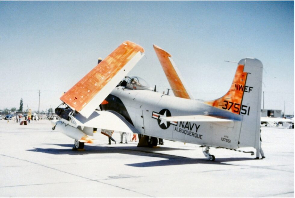 The AD-5 version of the A-1 was one of several aircraft used to test terrain following techniques. The aircraft flew near 50 feet off the ground in order to stay under enemy radar. The flights were done in daylight over courses marked with oil barrels across the southern area of Kirtland Air Force Base. When night vision goggles were developed, the low-level flights continued at night. In 1970. during one test, the AD-5 pilot flew so low that his prop blade struck and cut one of the barrels.