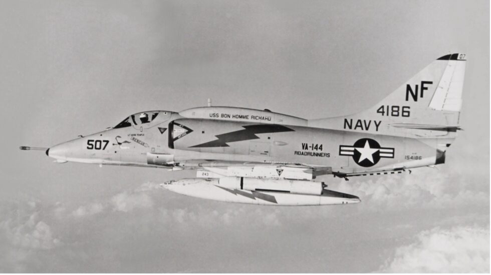 The Douglas A-4 Skyhawk was a single-seat subsonic carrier-capable light attack aircraft designed and produced by the Douglas Aircraft Company, and later, the McDonnell Douglas Corporation. It was originally designated the A4D under the United States Navy’s pre-1962 designation system.