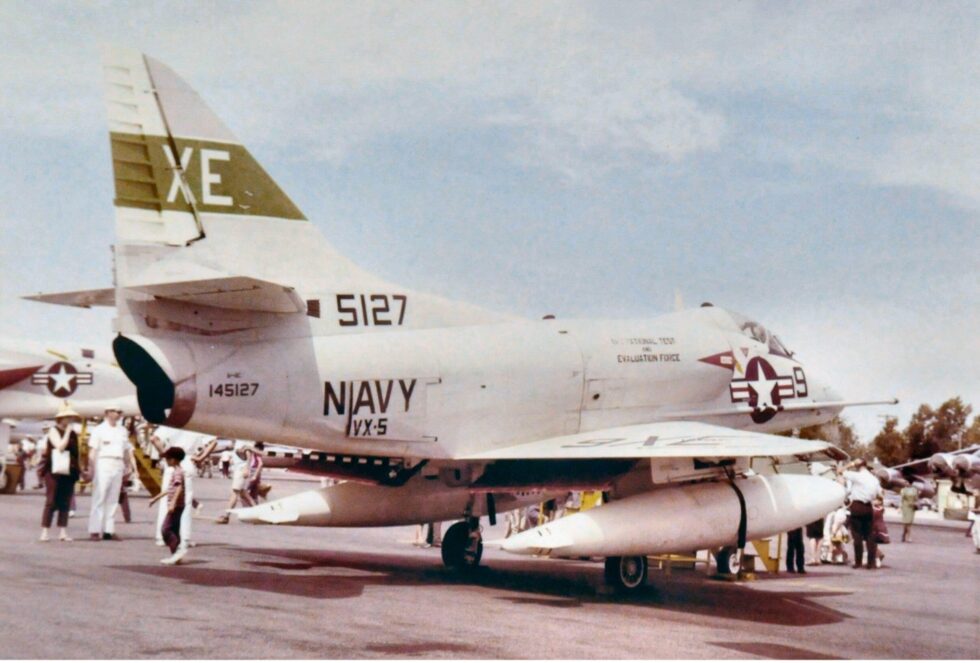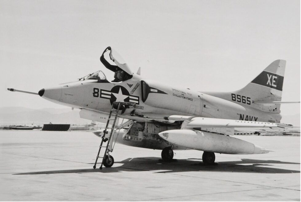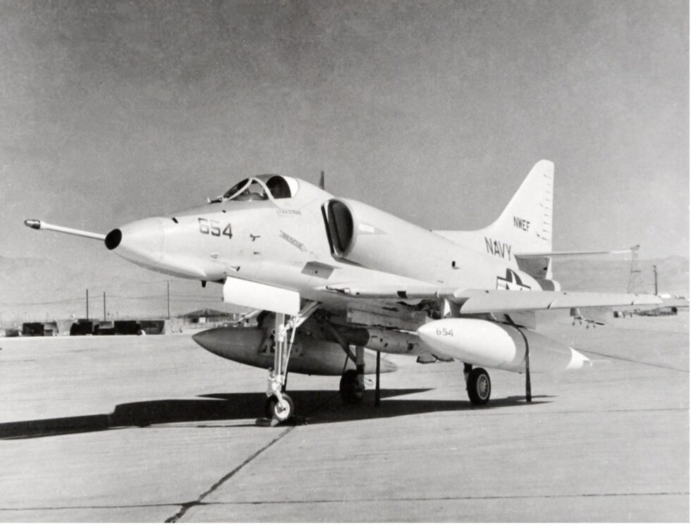 The Navy Weapons Evaluation Facility (NWEF) located at Kirtland AFB performed tests on the A-4M Skyhawk II for weapons capabilities. The tests were conducted on aircraft #158154 in 1970 and 1971.