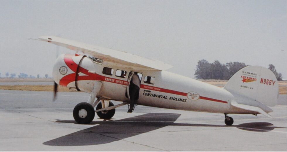 Varney Speed Lines began mail and occasional passenger service to El Paso, Texas and Pueblo, Colorado in 1934. Stops were also made at Santa Fe and Las Vegas, New Mexico. At Pueblo, passengers could continue on Wyoming Air Service onto Denver and Cheyenne, Wyoming. The route was flown with aircraft number N965Y.